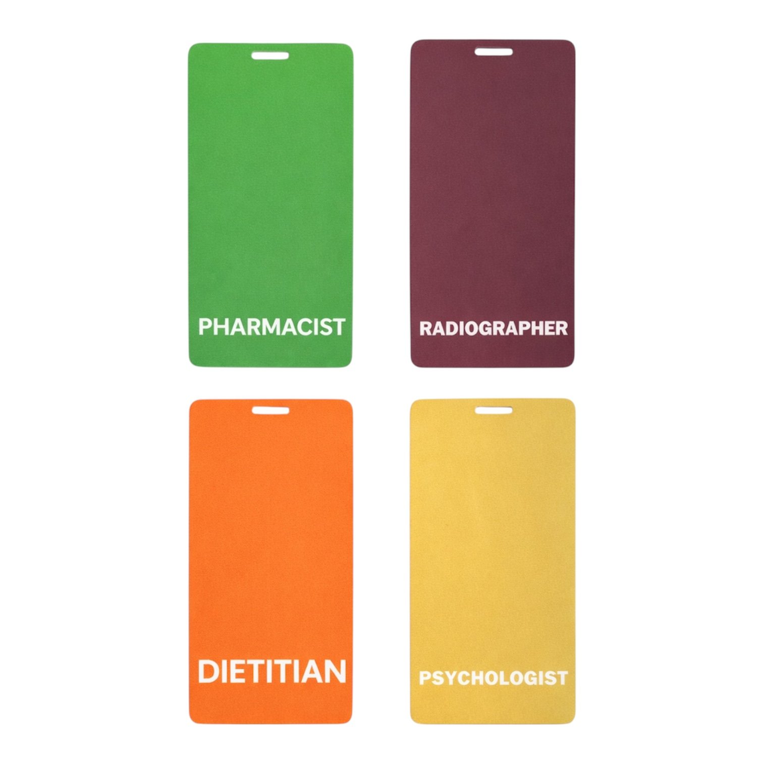 These healthcare identification badges are designed to be worn behind your existing staff ID card to help patients and colleagues quickly identify your role in busy healthcare environments.